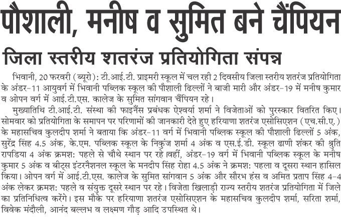 • Er. Kuldeep Sharma, Secretary General : Haryana Chess Association 09812920931